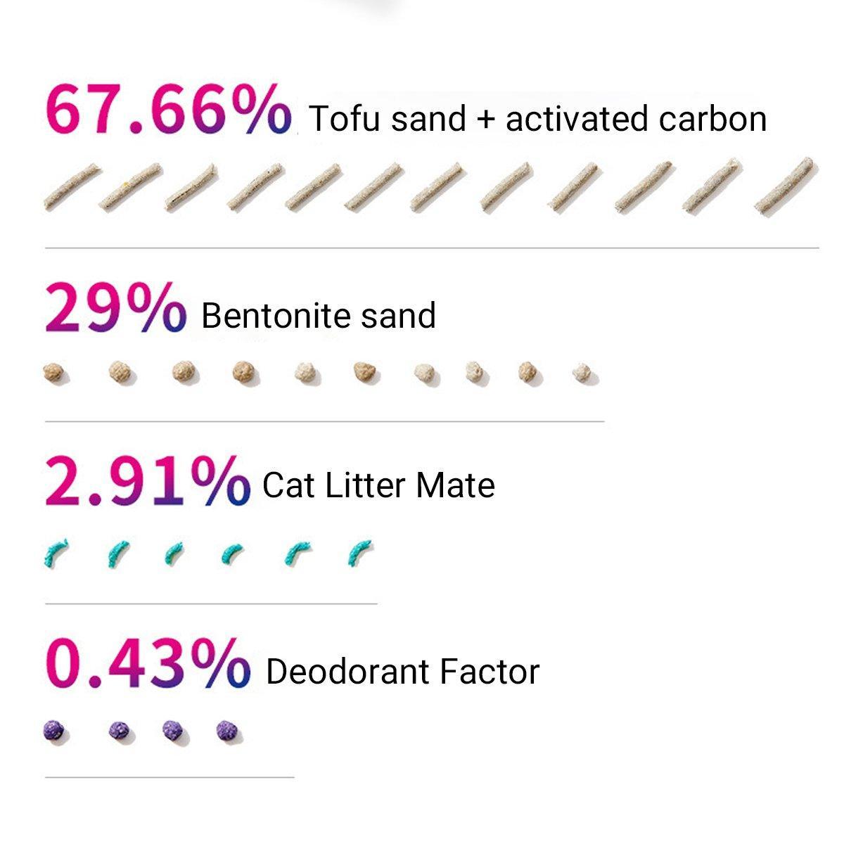- Material: Tofu cat litter, bentonite, activated charcoal