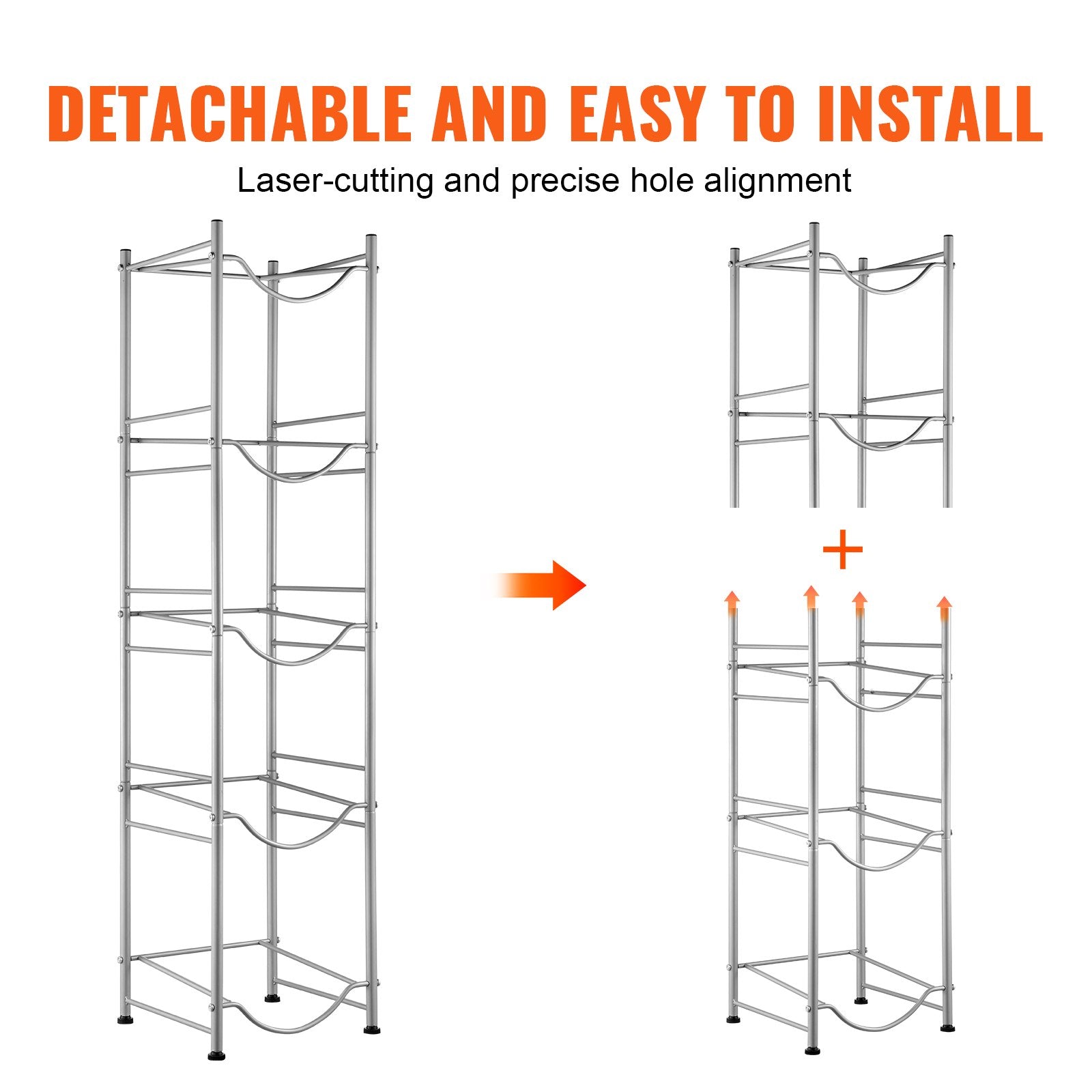 Our water jug rack features laser-cut holes for precise and easy assembly. The rack can be assembled with the desired number of tiers and comes with a manual for quick setup.