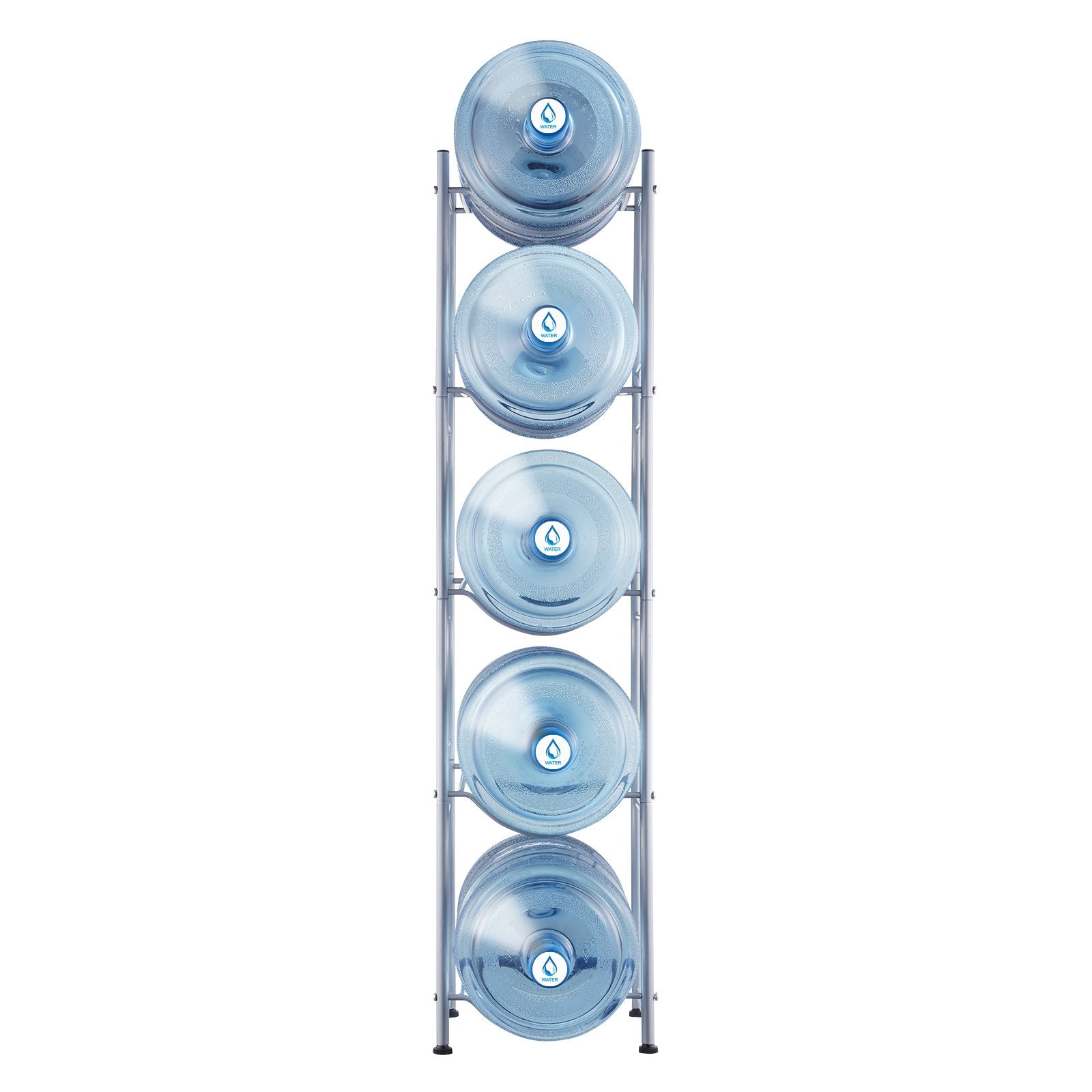 VEVOR 5 Tiers Water Jug Holder, 5 Gallon Water Bottle Holder, Single Row Water Bottle Rack for 5 Bottles, Heavy Duty Water Jug Rack for Kitchen, Office, Living Room, Silver